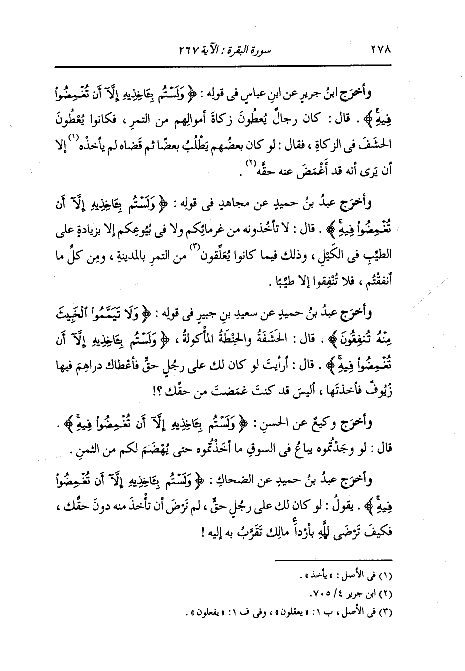وَأخرَج ابن أبي شيبة ، وعَبد بن حُمَيد عن محمد بن سيرين قال : سألت عبيدة عن هذه الآية {ولا تيمموا الخبيث منه تنفقون} قال : إنما ذلك في الزكاة في الشيء الواجب فأما في التطوع فلا بأس بأن يتصدق الرجل بالدرهم الزيف هو خير من التمرة