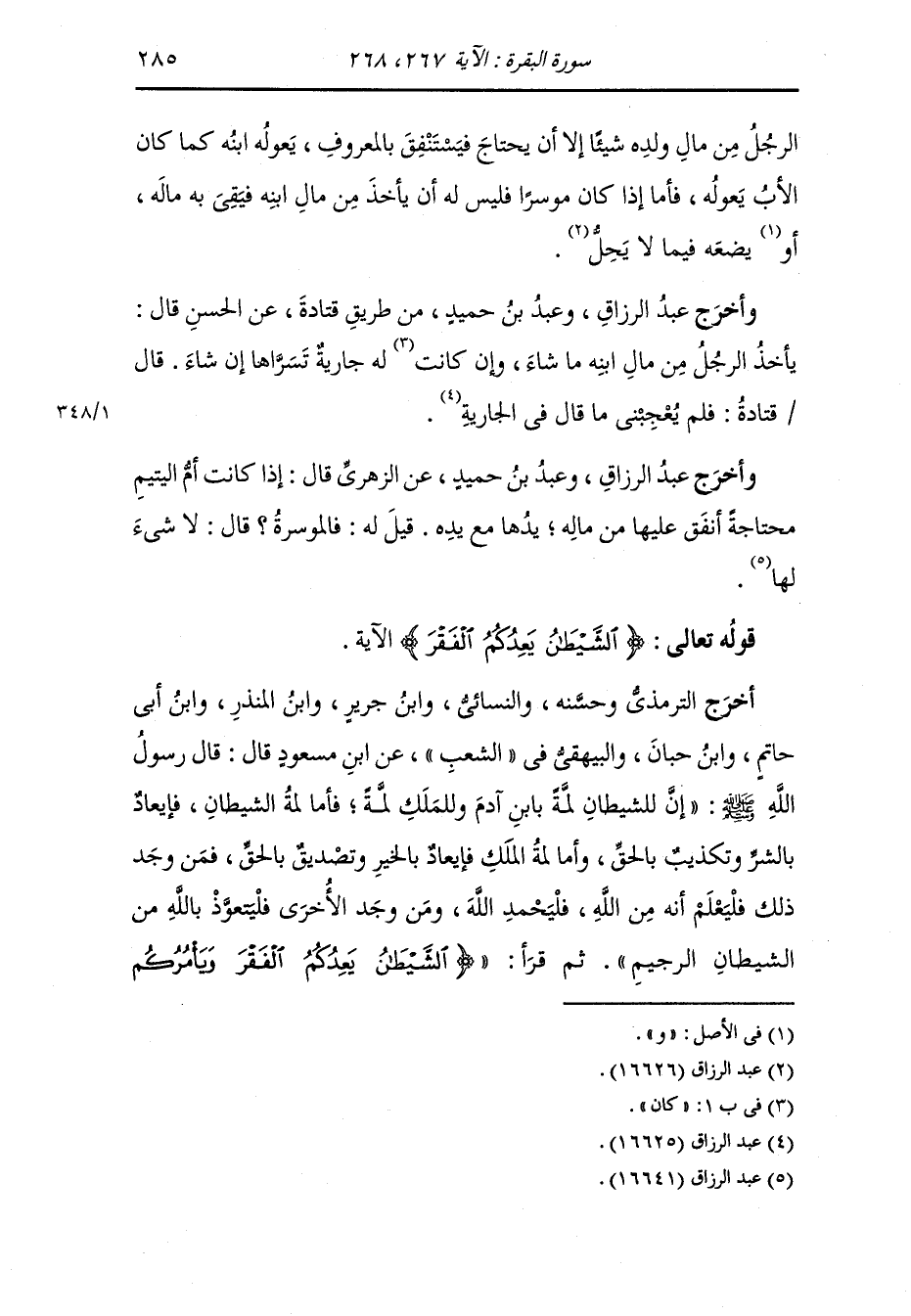 وأخرج عَبد بن حُمَيد عن محمد بن المنكدر قال جاء رجل إلى النَّبِيّ صلى الله عليه وسلم فقال : يا رسول الله إن لي مالا وإن لي عيالا ولأبي مال وله عيال وإن أبي يأخذ مالي ، قال : أنت ومالك لأبيك.