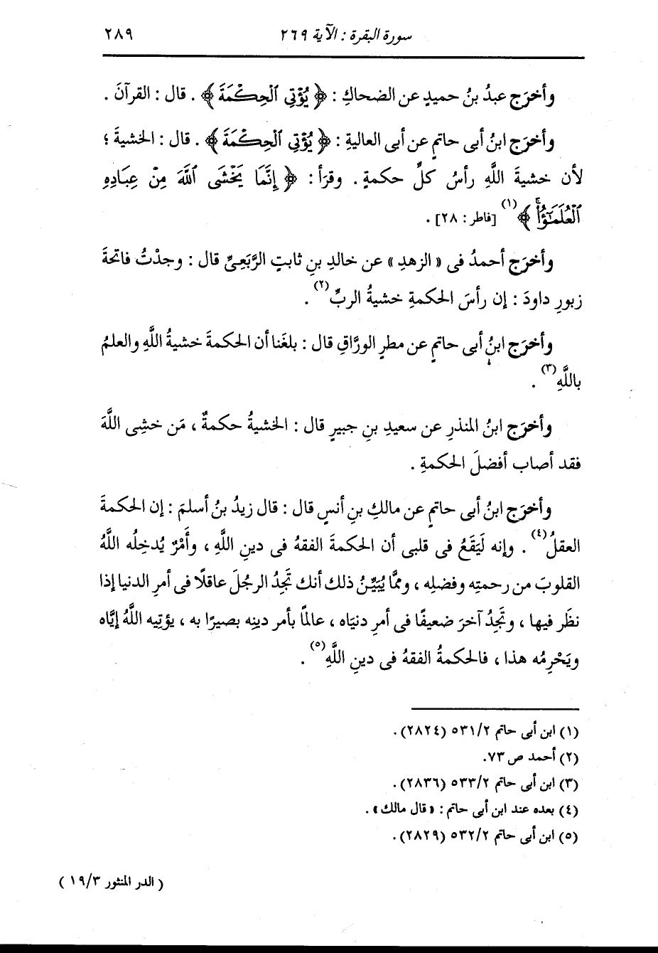 وأخرج ابن أبي حاتم عن أبي الدرداء {يؤت الحكمة} قال : قراءة القرآن والفكرة فيه.