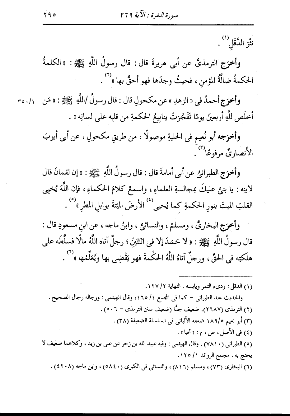 وأخرج ابن جرير والبيهقي في الشعب عن ابن مسعود قال كنا إذا تعلمنا من النَّبِيّ صلى الله عليه وسلم عشر آيات من القرآن لم نتعلم العشرالتي نزلت بعدها حتى نعلم ما فيه ، قيل لشريك : من العمل قال : نعم.
