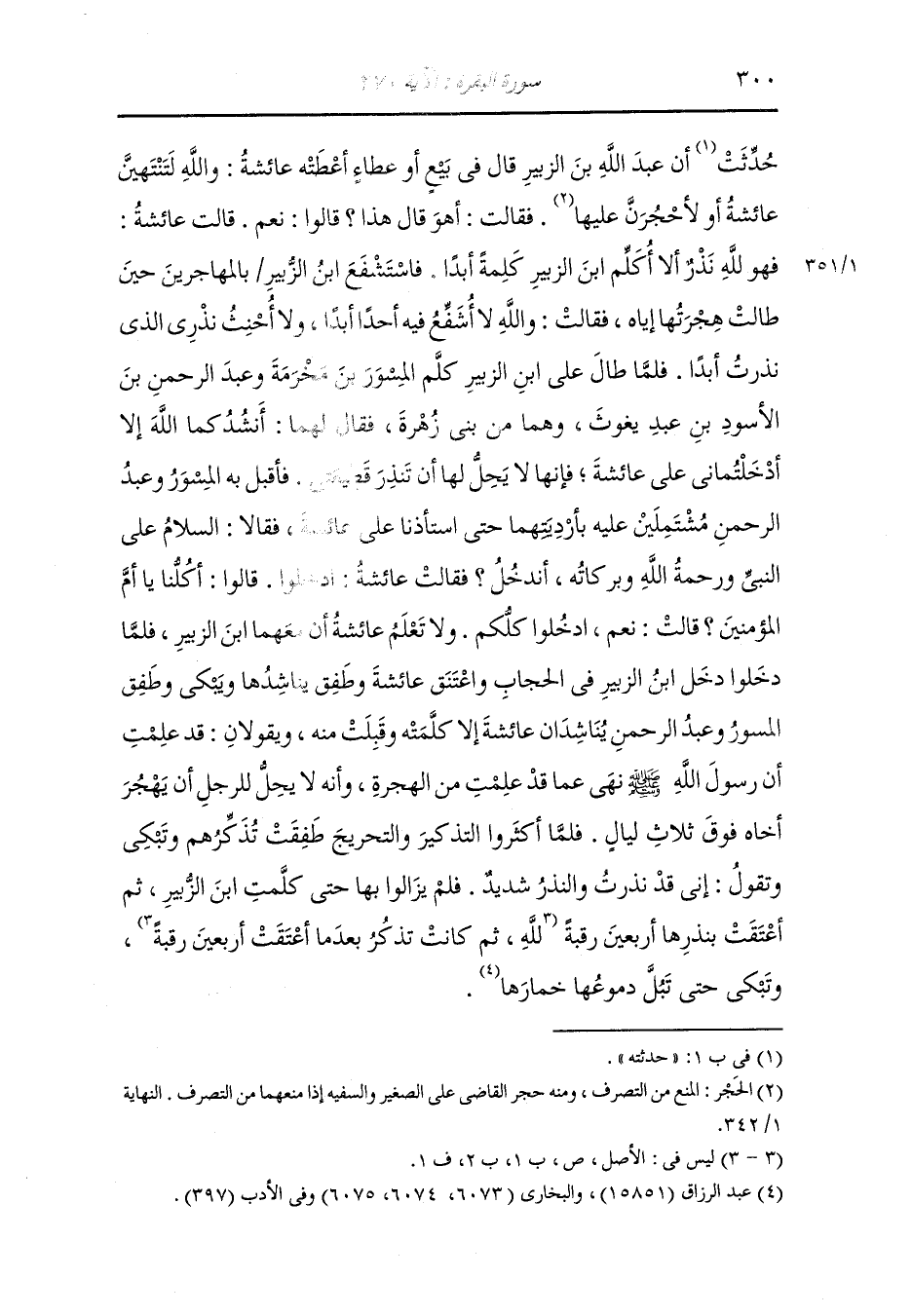 وأخرج عبد الرزاق والبخاري من طريق ابن شهاب عن عوف بن الحرث بن الطفيل وهو ابن أخي عائشة لأمها ، أن عائشة رضي الله عنها
