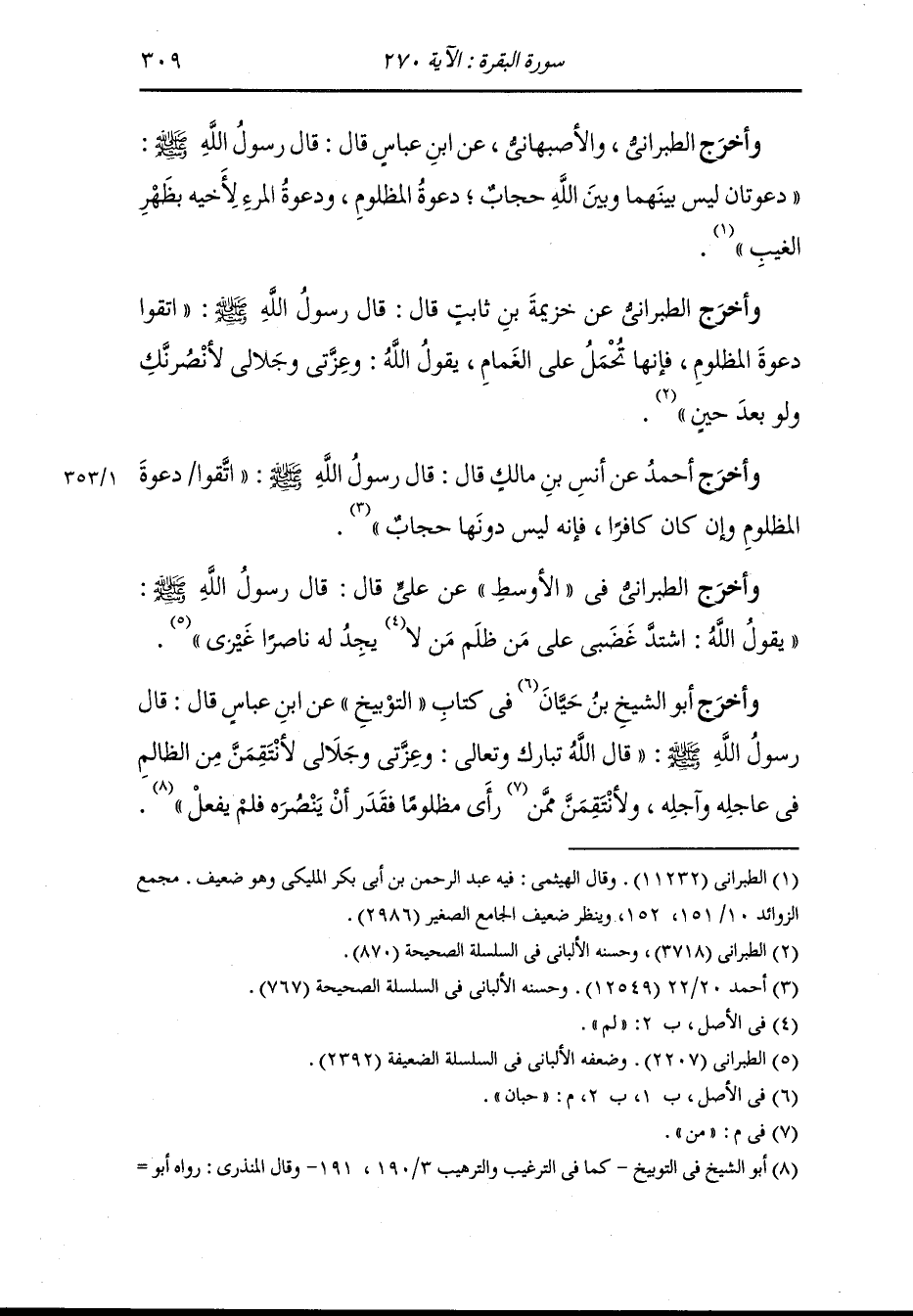 وأخرج الطبراني عن ابن مسعود أن النَّبِيّ صلى الله عليه وسلم قال : لا تظلموا فتدعوا فلا يستجاب لكم وتستسقوا فلا تسقوا وتستنصروا فلا تنصروا.