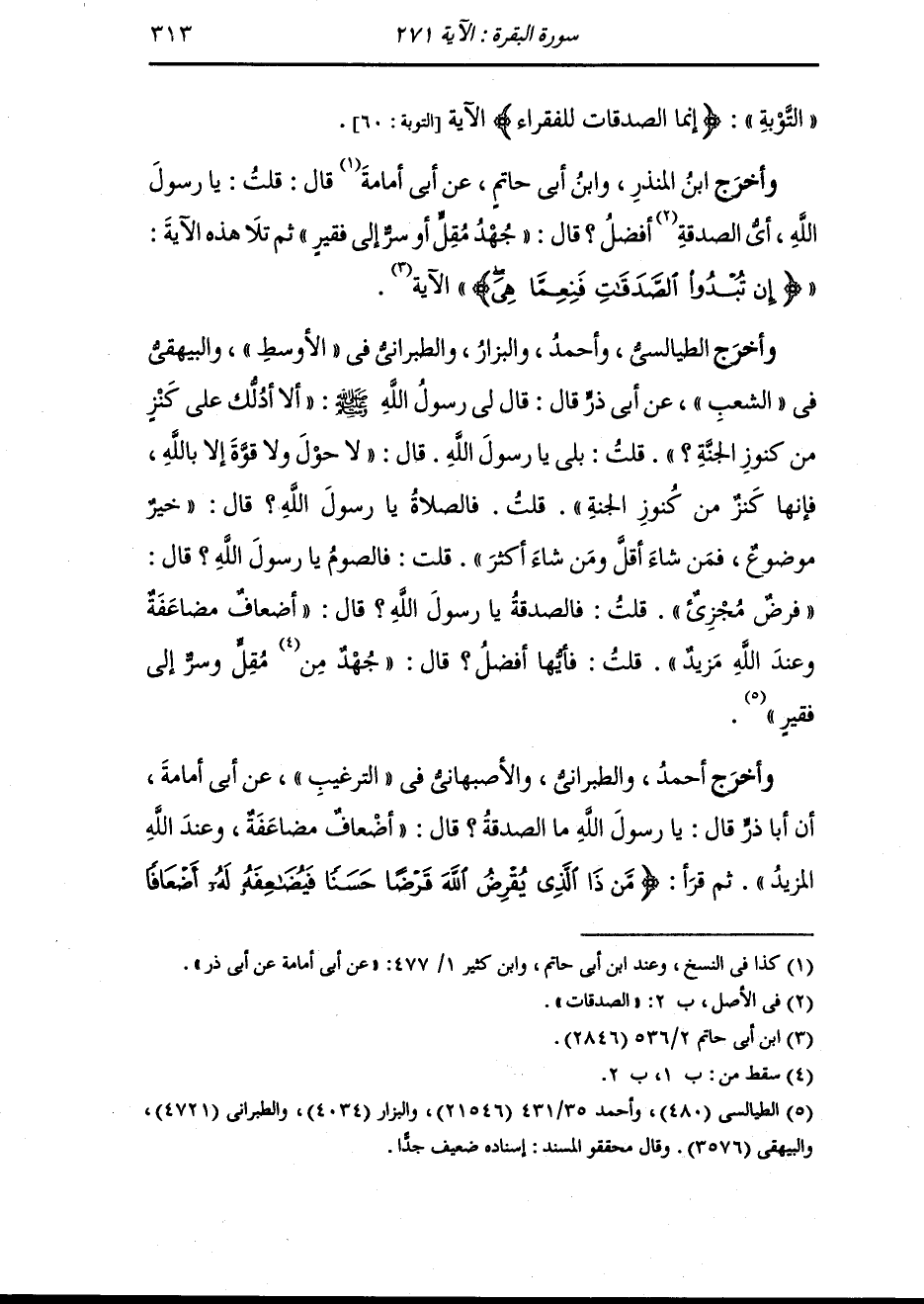 وأخرج ابن المنذر عن ابن عباس في قوله {إن تبدوا الصدقات فنعما هي} قال : هذا منسوخ وقوله (وفي أموالهم حق للسائل والمحروم) (الذاريات الآية 19) قال : منسوخ نسخ كل صدقة في القرآن الآية التي في