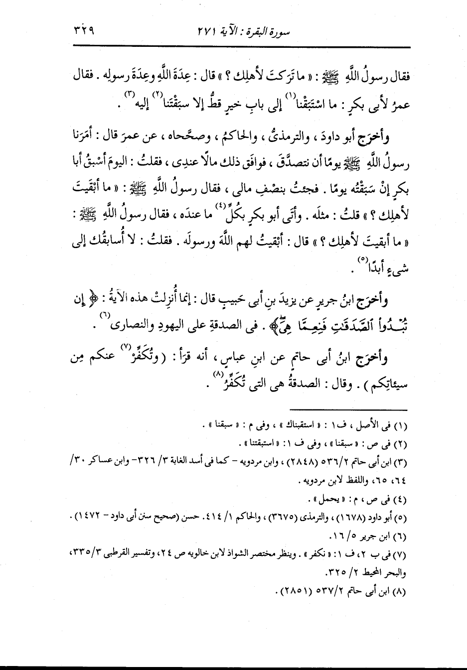 وأخرج ابن أبي حاتم ، وَابن مردويه والأصبهاني في الترغيب ، وَابن عساكر عن الشعبي قال : نزلت هذه الآية {إن تبدوا الصدقات فنعما هي} إلى آخر الآية في أبي بكر وعمر جاء عمر بنصف ماله يحمله إلى رسول الله صلى الله عليه وسلم على رؤوس الناس وجاء أبو بكر بماله أجمع يكاد أن يخفيه من نفسه