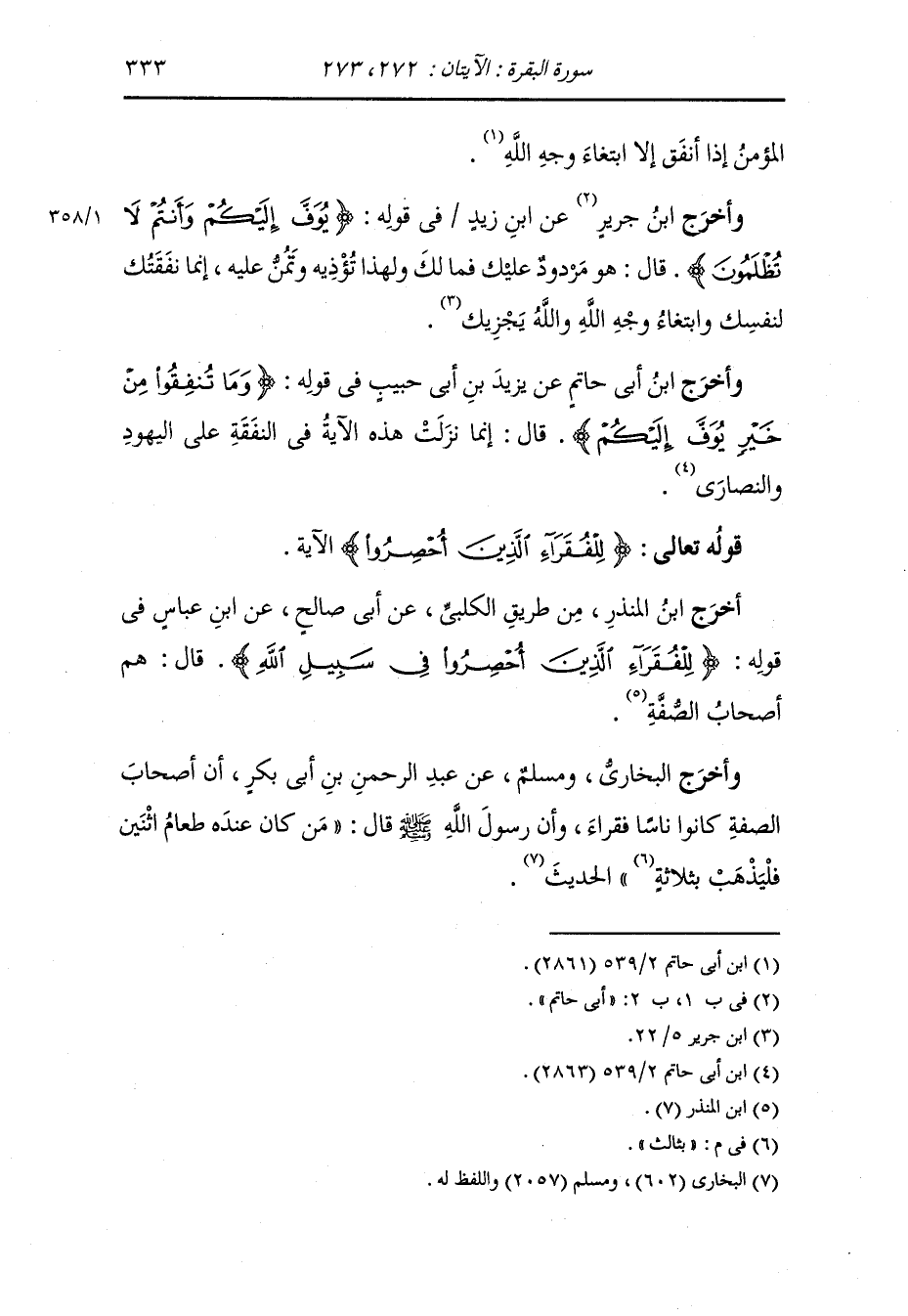 وأخرج سفيان ، وَابن المنذر عن عمرو الهلالي قال : سئل النَّبِيّ صلى الله عليه وسلم أنتصدق على فقراء أهل الكتاب فأنزل الله {ليس عليك هداهم} الآية ، ثم دلوا على الذي هو خير وأفضل فقيل (للفقراء الذين أحصروا) (البقرة الآية 273) الآية.