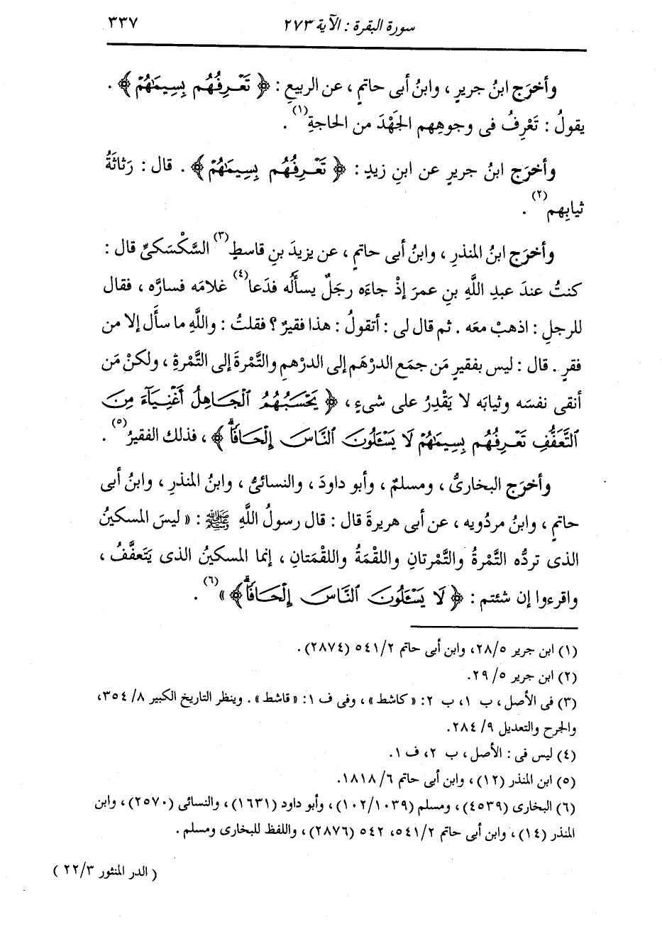 وأخرج ابن أبي حاتم عن الحسن في قوله {يحسبهم الجاهل أغنياء} قال : دل الله المؤمنين عليهم وجعل نفقاتهم لهم وأمرهم أن يضعوا نفقاتهم فيهم ورضي عنهم.