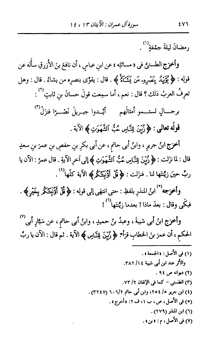 وأَخرج الطستي في مسائله عن ابن عباس أن نافع بن الأزرق سأله عن قوله {يؤيد بنصره من يشاء} قال : يقوي بنصره من يشاء قال : وهل تعرف العرب ذلك قال : نعم ، أما سمعت قول حسان بن ثابت رضي الله عنه : برجال لستمو أمثالهم * أيدوا جبريل نصرا فنزل.