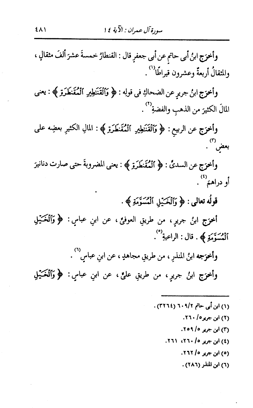 وأَخرج ابن جرير عن الضحاك في قوله {والقناطير المقنطرة} يعني المال الكثير من الذهب والفضة.