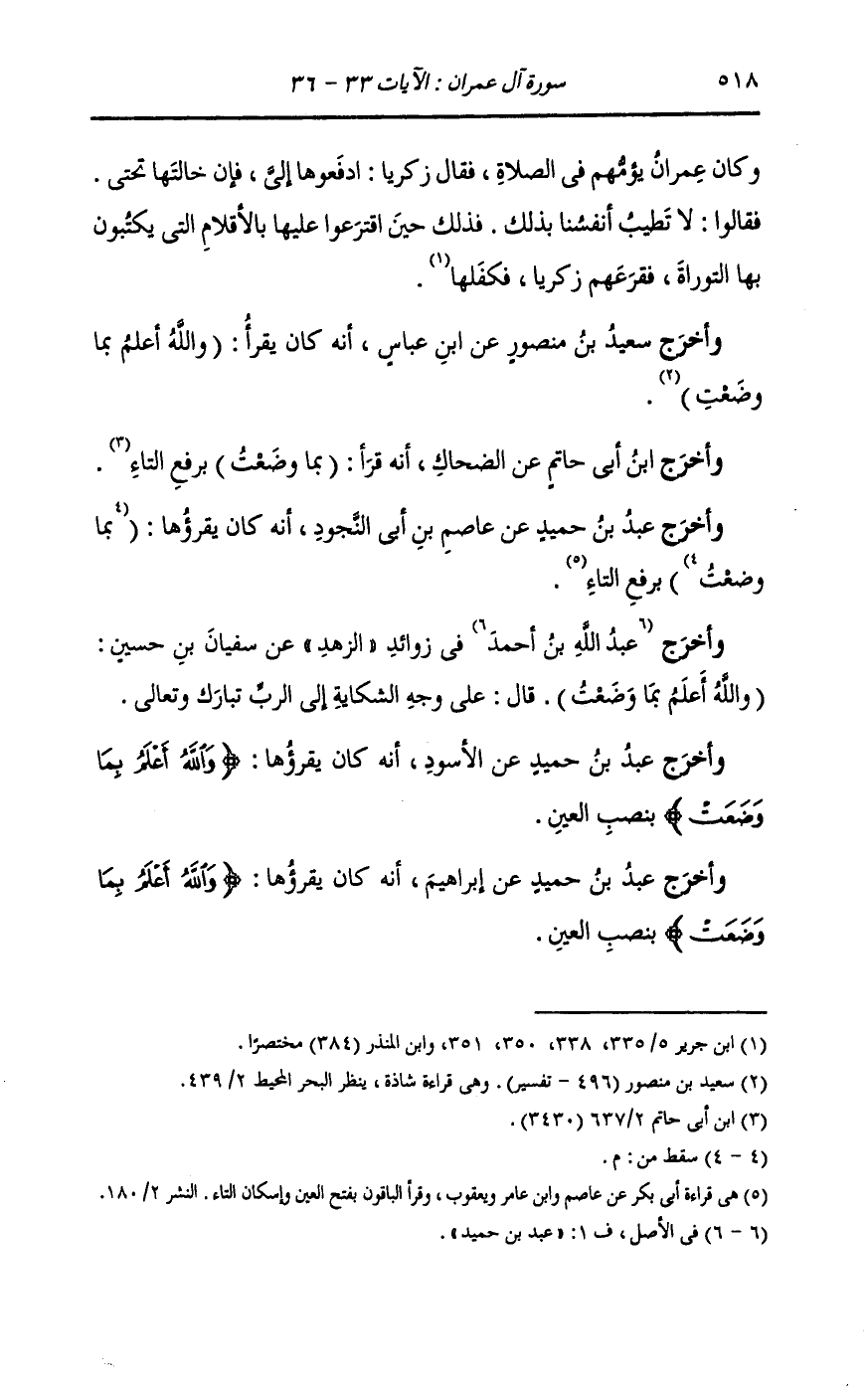 وأخرج عَبد بن حُمَيد عن إبراهيم أنه كان يقرؤها {والله أعلم بما وضعت} بنصب العين