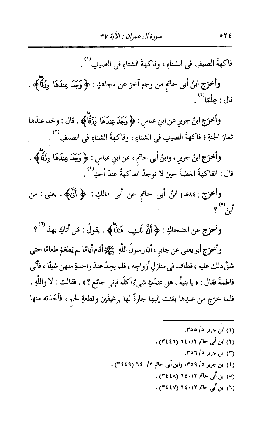 وأخرج ابن جرير عن ابن عباس {وجد عندها رزقا} قال : وجد عندها ثمار الجنة ، فاكهة الصيف في الشتاء وفاكهة الشتاء في الصيف.