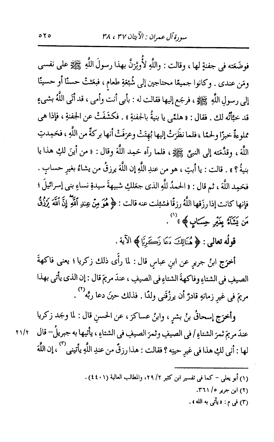 أخرج ابن جرير عن ابن عباس قال : لما رأى ذلك زكريا يعني فاكهة الصيف في الشتاء وفاكهة الشتاء في الصيف عند مريم قال : إن الذي يأتي بهذا مريم في غير زمانه قادر على أن يرزقني ولدا فذلك حين دعا ربه.