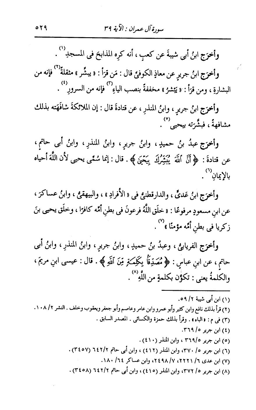 وأخرج ابن جرير ، وَابن المنذر عن قتادة قال : إن الملائكة شافهته بذلك مشافهة فبشرته بيحيى.