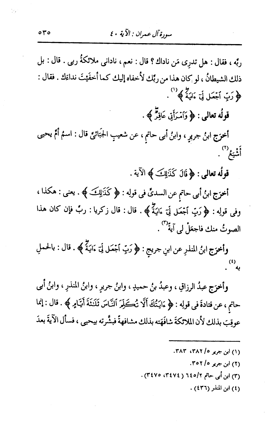 أخرج ابن أبي حاتم عن السدي في قوله {كذلك} يعني هكذا ، وفي قوله {رب اجعل لي آية} قال : قال زكريا : رب فان كان هذا الصوت منك فاجعل لي آية.