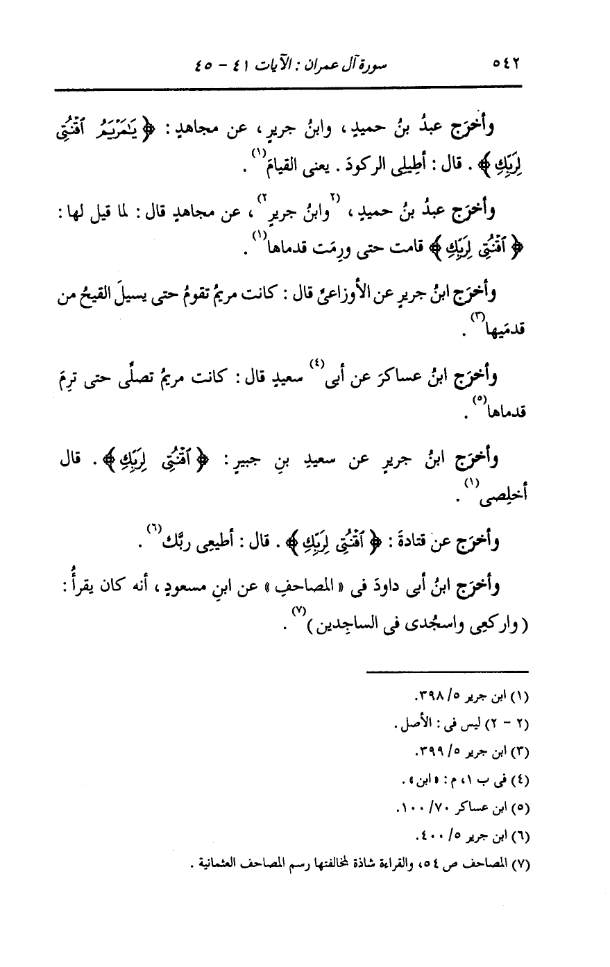 وأخرج عَبد بن حُمَيد ، وَابن جَرِير عن مجاهد {يا مريم اقنتي لربك} قال : أطيلي الركود يعني القيام.
