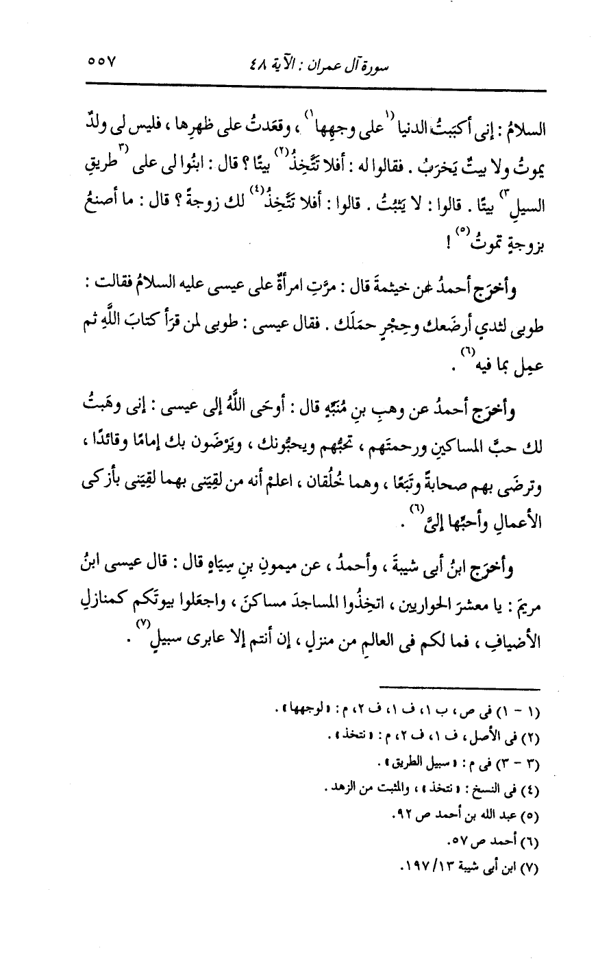 وأخرج ابن أبي شيبة وأحمد عن ميمون بن سياه قال : قال عيسى بن مريم : يا معشر الحواريين اتخذوا المساجد مساكن واجعلوا بيوتكم كمنازل الأضياف ، فما لكم في العالم من منزل ان أنتم إلا عابري سبيل