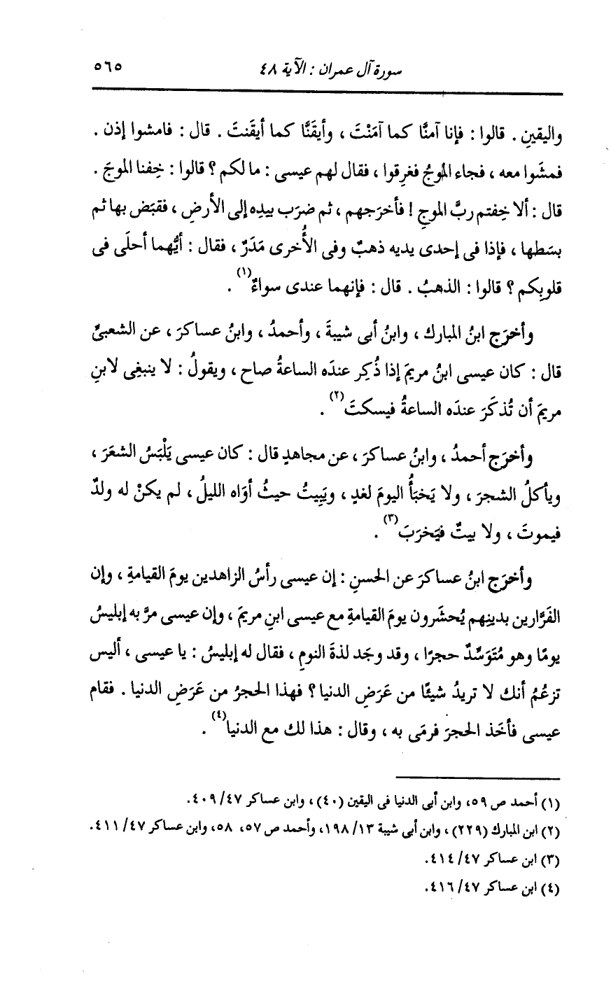 وأخرج ابن عساكر عن الحسن : إن عيسى رأس الزاهدين يوم القيامة وإن