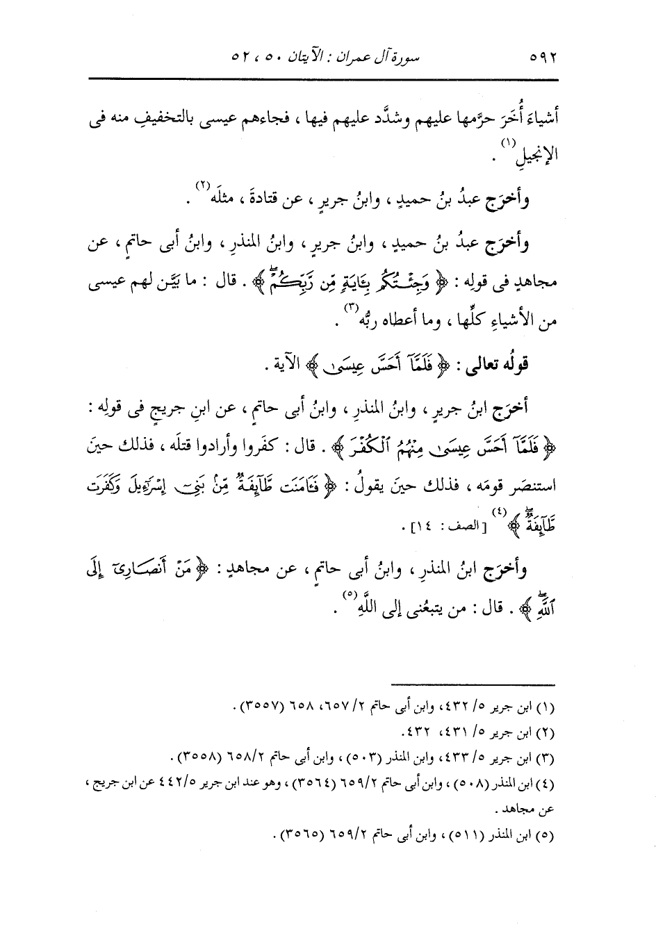 أخرج ابن جرير ، وَابن المنذر ، وَابن أبي حاتم عن ابن جريج في قوله {فلما أحس عيسى منهم الكفر} قال : كفروا وأرادوا قتله ، فذلك حين استنصر قومه ، فذلك حين يقول (فآمنت طائفة من بني إسرائيل وكفرت طائفة) (الصف الآية 14)