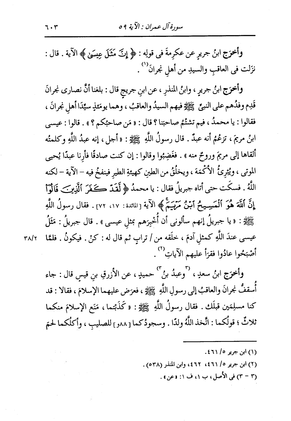 وأخرج ابن جرير عن عكرمة في قوله {إن مثل عيسى} الآية قال : نزلت في العاقب والسيد من أهل نجران.
