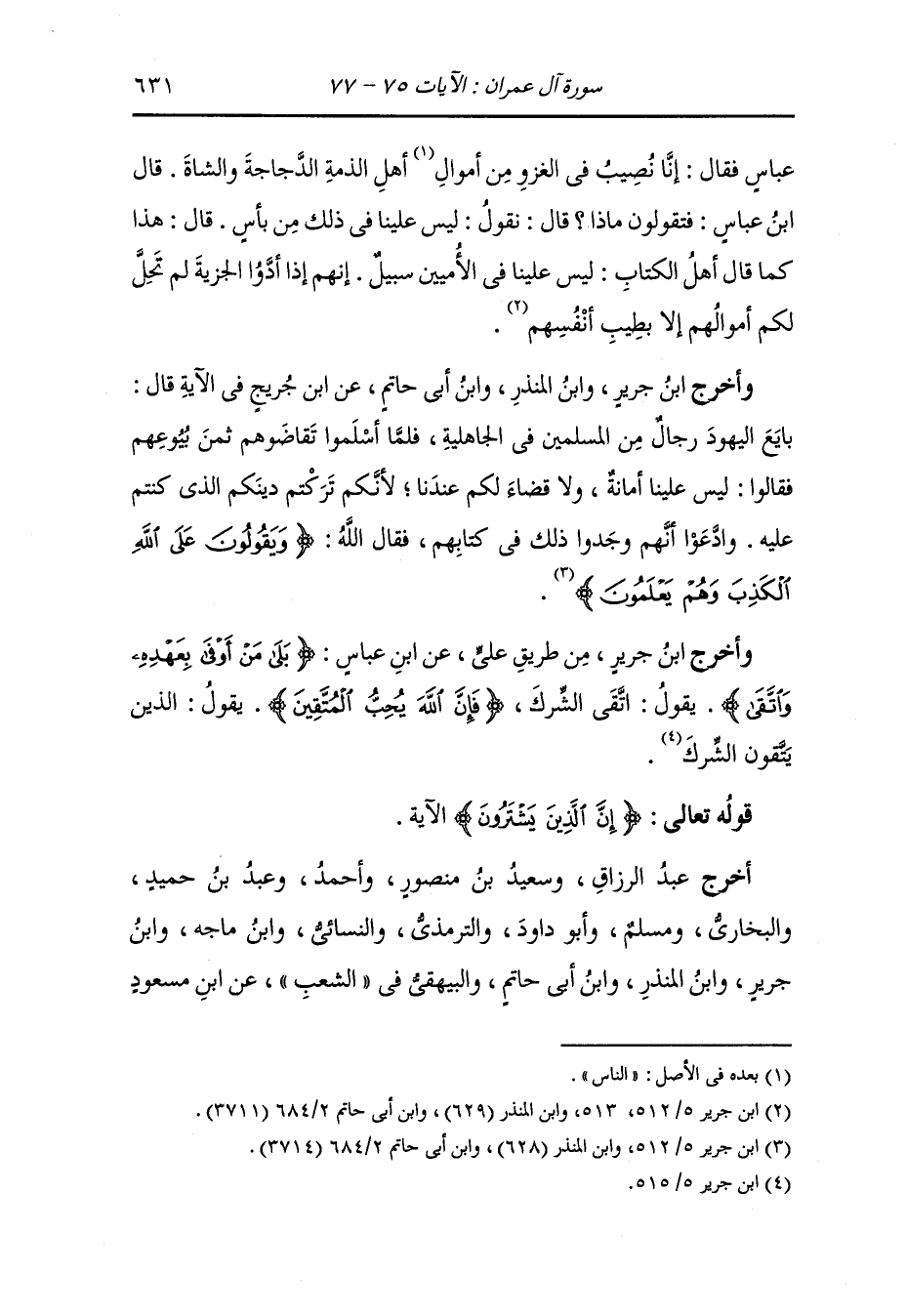 أخرج عبد الرزاق وسعيد بن منصور وأحمد ، وعَبد بن حُمَيد والبخاري ومسلم وأبو داود والترمذي والنسائي ، وَابن ماجة ، وَابن جَرِير ، وَابن المنذر ، وَابن أبي حاتم والبيهقي في الشعب عن ابن مسعود