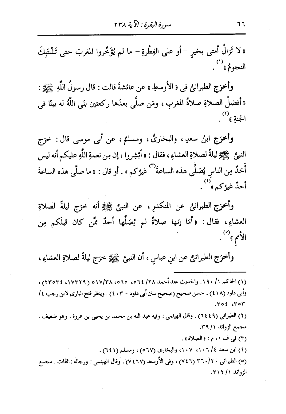 وأخرج ابن ماجة والحاكم وصححه والبيهقي في "سُنَنِه" عن العباس بن عبد المطلب قال : قال رسول الله صلى الله عليه وسلم لا تزال أمتي على الفطرة ما لم يؤخروا المغرب حتى تشتبك النجوم.