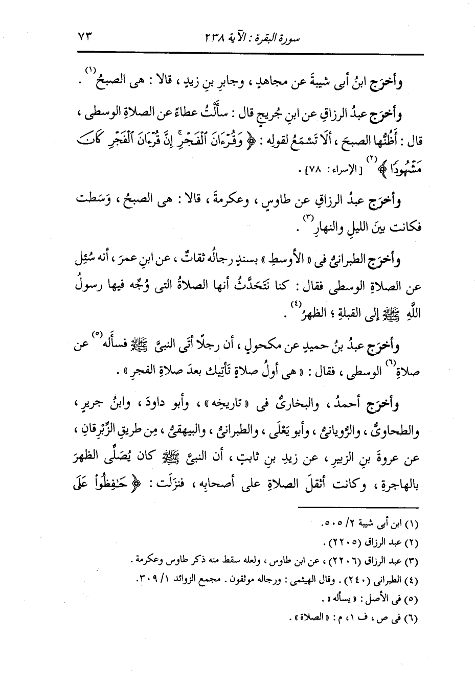 وأخرج سفيان بن عينية ، عَن طاووس قال : الصلاة الوسطى صلاة الصبح
