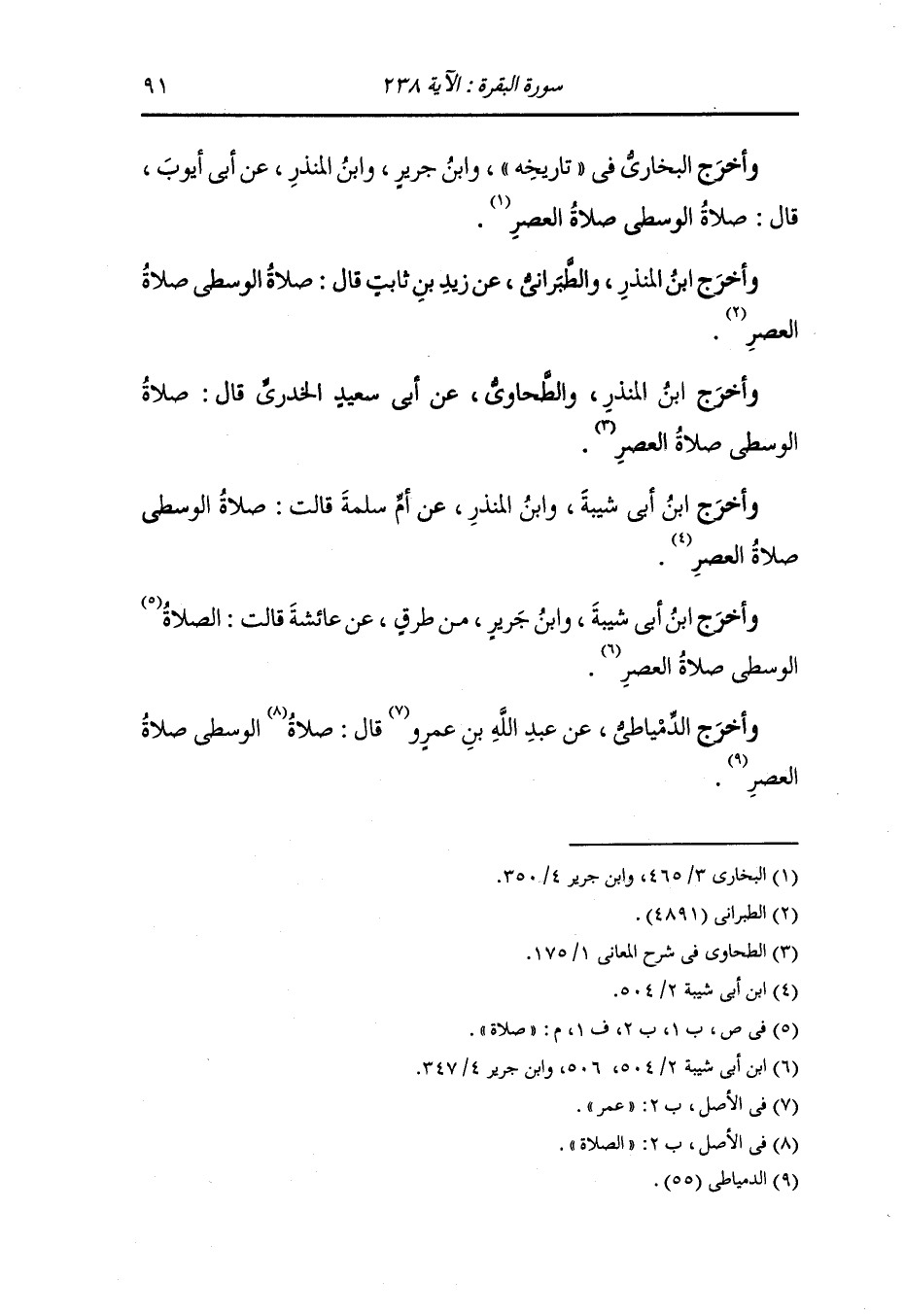 وأخرج ابن جرير والطحاوي من طريق سالم عن أبيه عبد الله بن عمر قال : الصلاة الوسطى صلاة العصر.