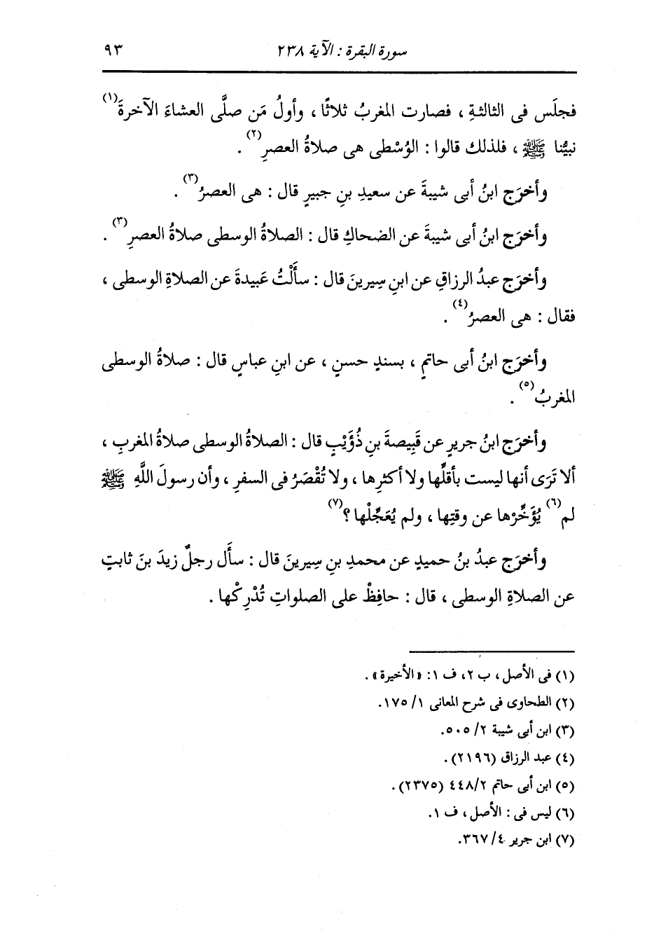 وأخرج عَبد بن حُمَيد ، وَابن جَرِير عن قتادة قال : كنا نحدث أن الصلاة الوسطى صلاة العصر قبلها صلاتان من النهار وبعدها صلاتان من الليل.