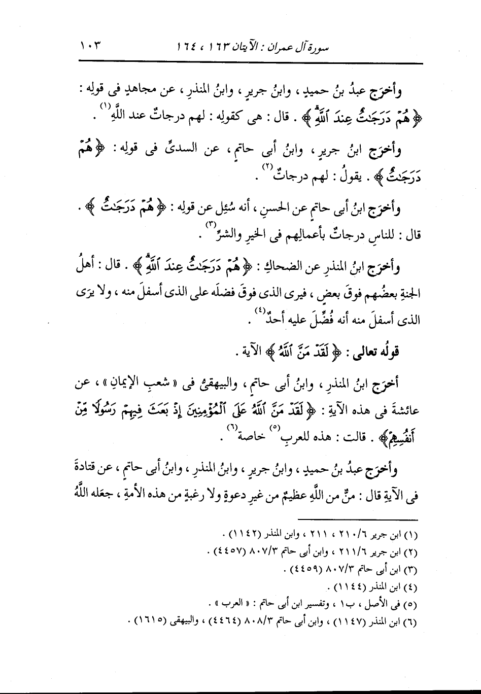 وأخرج ابن جرير ، وَابن أبي حاتم من طريق العوفي عن ابن عباس {هم درجات عند الله} يقول : بأعمالهم