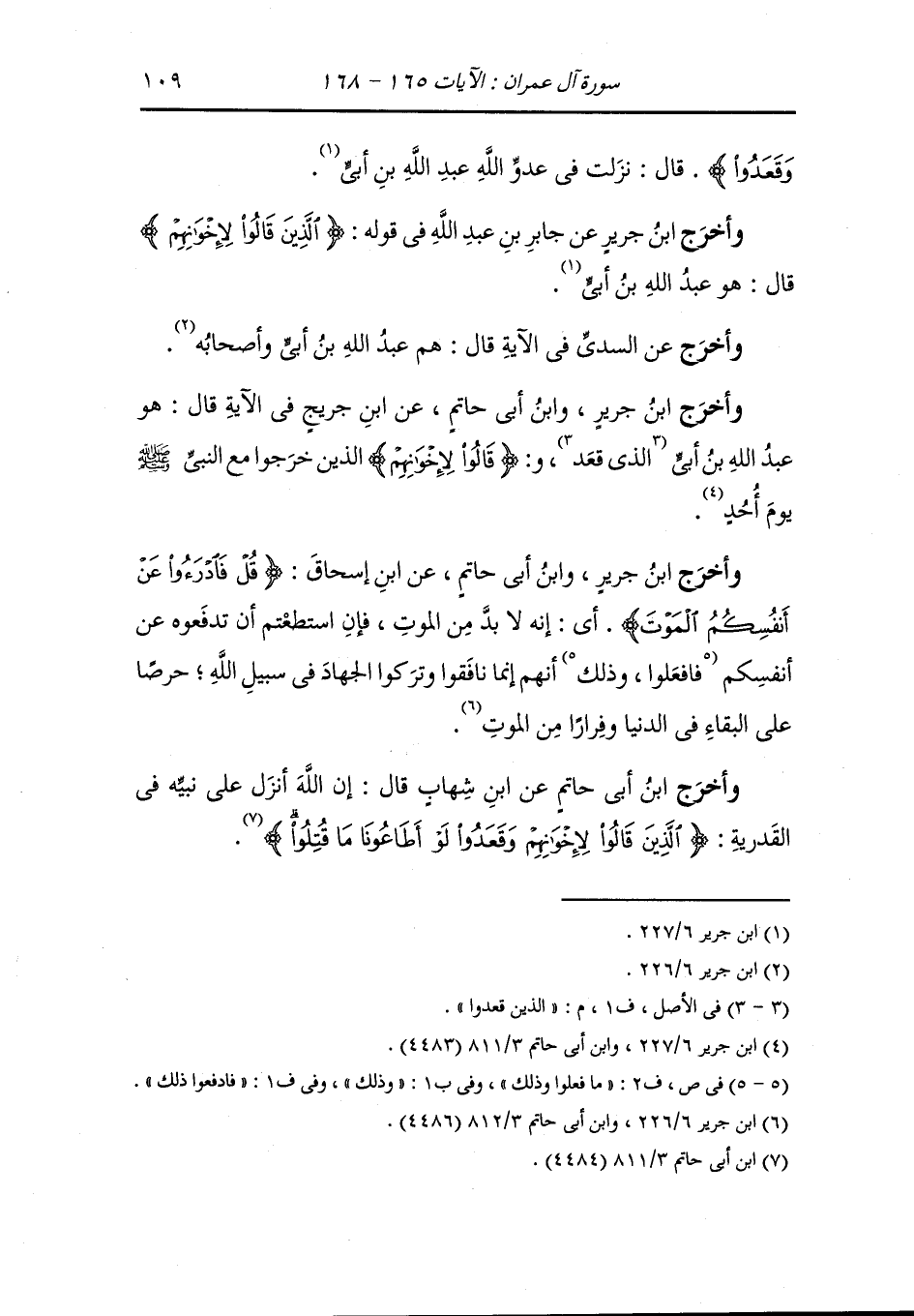 وأخرج ابن جرير عن السدي قال : خرج رسول الله صلى الله عليه وسلم يوم أحد في ألف رجل وقد وعدهم الفتح إن صبروا فلما خرجوا رجع عبد الله بن أبي في ثلاثمائة فتبعهم أبو جابر السلمي يدعوهم فلما غلبوه وقالوا له : ما نعلم قتالا ولئن أطعتنا لترجعن معنا ، فذكر الله ، فهو قولهم : ولئن أطعتنا لترجعن {الذين قالوا لإخوانهم وقعدوا لو أطاعونا ما قتلوا} الآية.