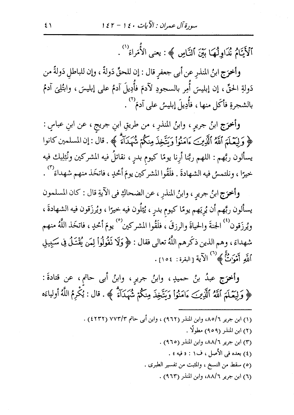 وأخرج عن السدي {وتلك الأيام نداولها بين الناس} يوما لكم ويوما عليكم.