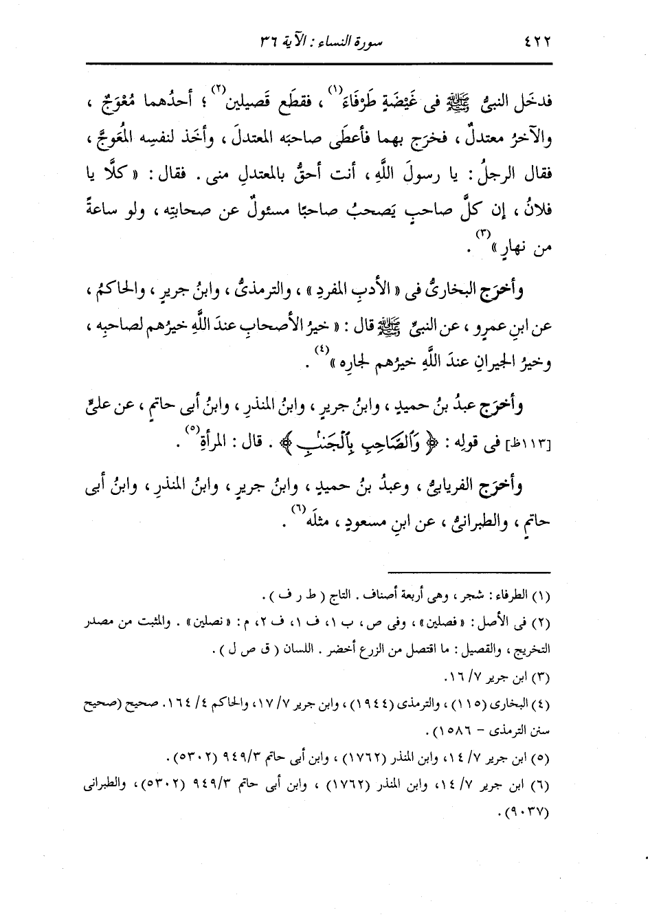 وأخرج ابن جرير ، وَابن المنذر ، وَابن أبي حاتم والبيهقي في الشعب عن ابن عباس في قوله {والصاحب بالجنب} قال : الرفيق في السفر.