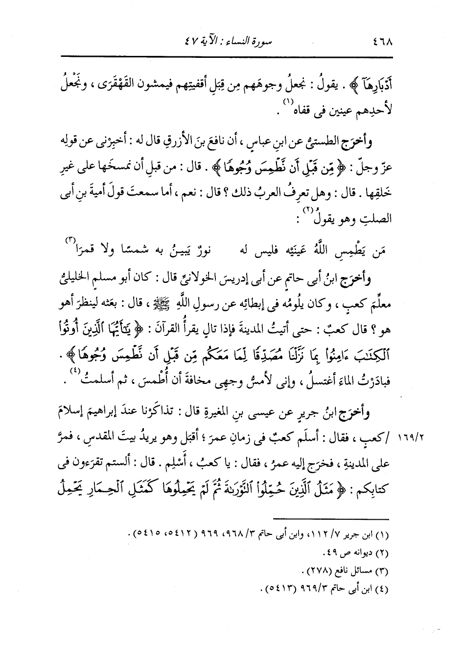 وأخرج ابن جرير ، وَابن أبي حاتم عن ابن زيد {فنردها على أدبارها} قال : كان أبي يقول إلى الشام أي رجعت إلى الشام من حيث جاءت ردوا إليه.