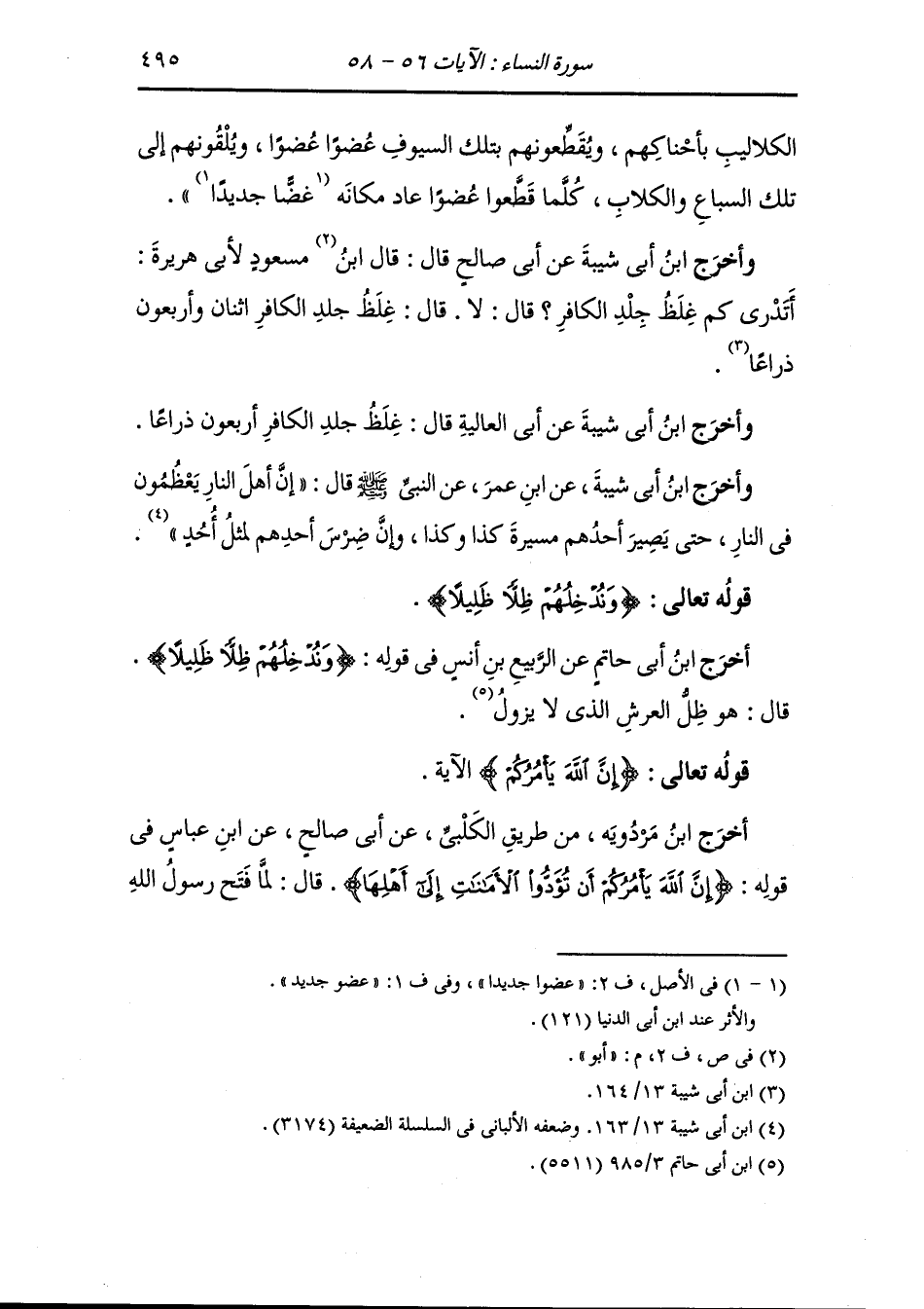 وأخرج ابن جرير ، وَابن المنذر عن ابن جريج في قوله {إن الله يأمركم أن تؤدوا الأمانات إلى أهلها} قال : نزلت في عثمان بن طلحة قبض منه النَّبِيّ صلى الله عليه وسلم مفتاح الكعبة ودخل به البيت يوم الفتح فخرج وهو يتلو هذه الآية فدعا عثمان فدفع