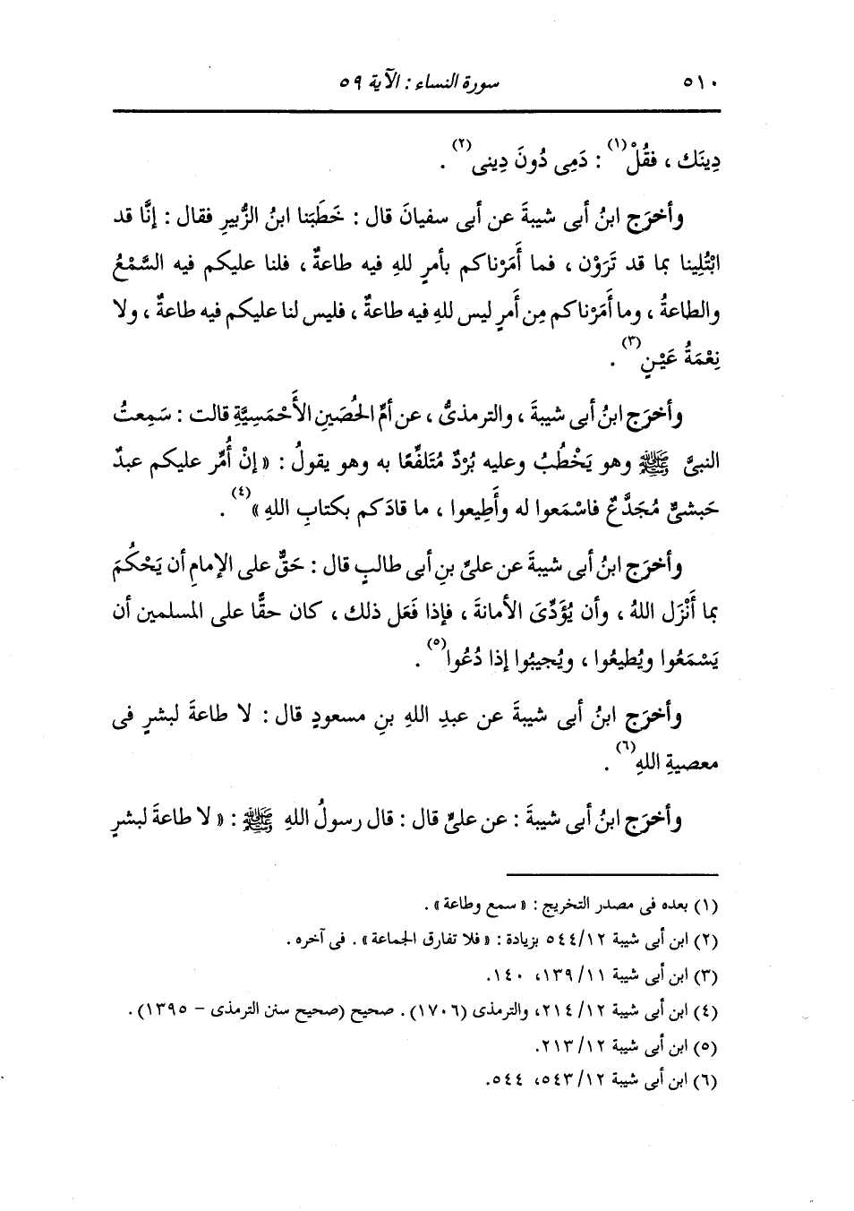 وأخرج ابن أبي شيبة ، عَن عَلِي ، قال : بعث رسول الله صلى الله عليه وسلم سرية واستعمل عليهم رجلا من الأنصار فأمرهم أن يسمعوا له ويطيعوا ، قال : فأغضبوه في شيء فقال : اجمعوا لي حطبا ، فجمعوا له حطبا ، قال : أوقدوا نارا ، فأوقدوا نارا ، قال : ألم يأمركم أن تسمعوا له وتطيعوا قالوا : بلى ، قال : فادخلوها ، فنظر بعضهم إلى بعض وقالوا : إنما فررنا إلى رسول الله صلى الله عليه وسلم من النار فسكن غضبه وطفئت النار فلما قدموا على رسول الله صلى الله عليه وسلم ذكروا ذلك له فقال : لو دخلوها ما خرجوا منها إنما الطاعة في المعروف.