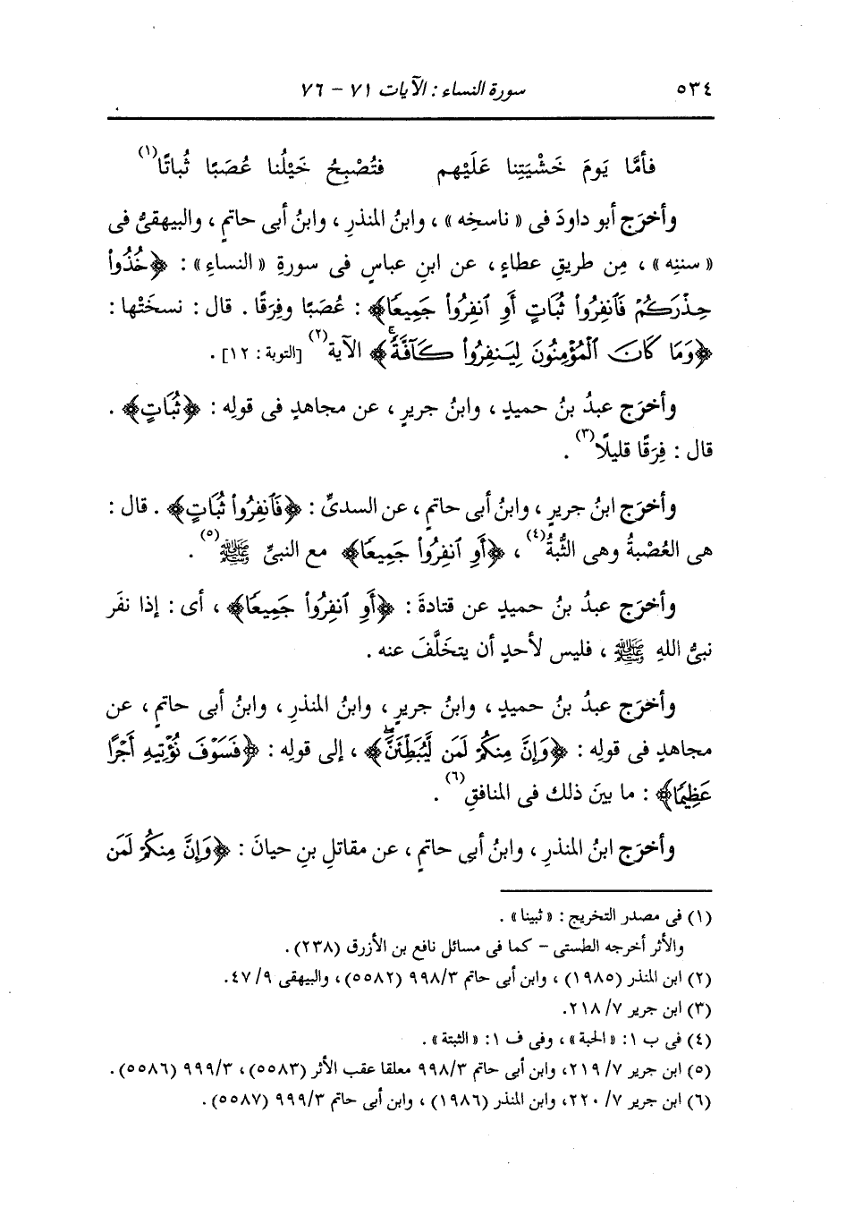 وأخرج عَبد بن حُمَيد ، وَابن جَرِير ، وَابن المنذر ، وَابن أبي حاتم عن قتادة {وإن منكم لمن ليبطئن} عن الجهاد وعن الغزو في سبيل الله {فإن أصابتكم مصيبة قال قد أنعم الله علي إذ لم أكن معهم شهيدا} قال : هذا قول مكذب {ولئن أصابكم فضل من الله ليقولن} الآية ، قال : هذا قول حاسد ، واخرج ابن جرير ، وَابن المنذر عن ابن جريج {وإن منكم لمن ليبطئن} قال : المنافق يبطى ء المسلمين عن الجهاد في سبيل الله {فإن أصابتكم مصيبة} قال : بقتل العدو من المسلمين {قال قد أنعم الله علي إذ لم أكن معهم شهيدا} قال : هذا قول الشامت {ولئن أصابكم فضل من