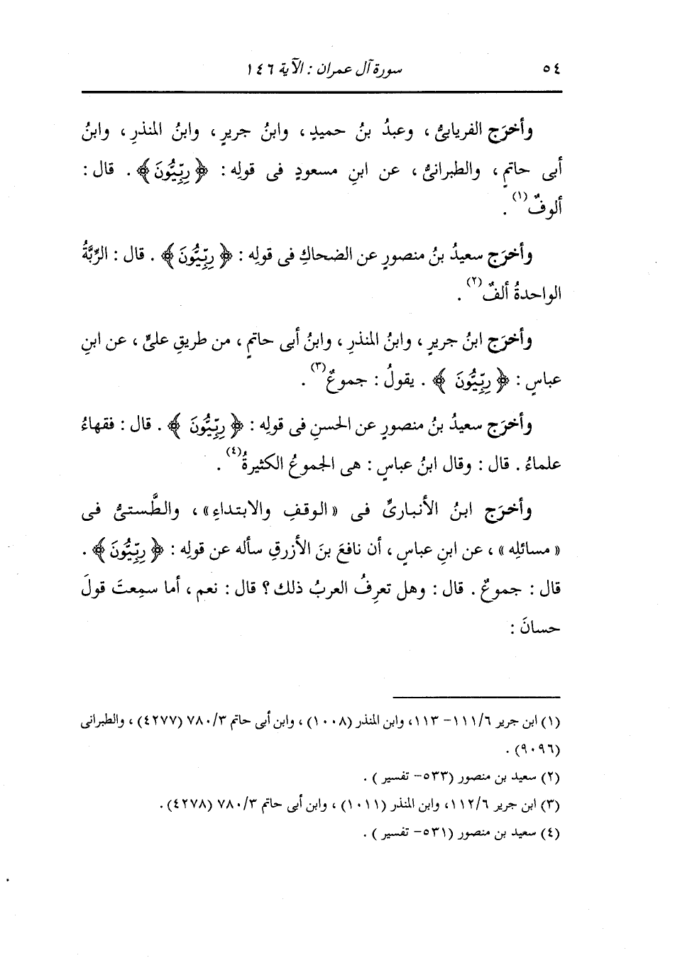 أخرج سعيد بن منصور ، وعَبد بن حُمَيد من طريق أبي عبيدة عن ابن مسعود أنه قرأ {وكأين من نبي قاتل معه ربيون} ويقول ألا ترى أنه يقول {فما وهنوا لما أصابهم في سبيل الله}.