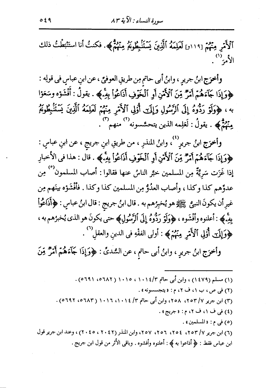 وأخرج عَبد بن حُمَيد ، وَابن المنذر ، وَابن أبي حاتم عن قتادة {ولو ردوه إلى الرسول وإلى أولي الأمر منهم} يقول : إلى علمائهم.