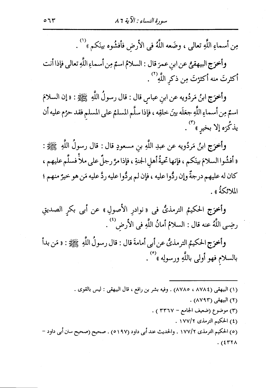 وأخرج البيهقي عن الحارث بن شريح أن رسول الله صلى الله عليه وسلم قال : إن المسلم أخو المسلم إذا لقيه رد عليه من السلام بمثل ما حياه به أو أحسن من ذلك وإذا استأمره نصح له وإذا استنصره على الأعداء نصره وإذا استنعته قصد السبيل يسره ونعت له وإذا استغاره أحد على العدو أغاره وإذا استعاره الحد على المسلم لم يعره وإذا استعاره الجنة أعاره لا يمنعه الماعون ، قالوا : يا رسول الله وما الماعون قال : الماعون في الحجر والماء والحديد ، قالوا : وأي الحديد قال : قدر النحاس وحديد الفاس الذي تمتهنون به ، قالوا : فما هذا الحجر قال : القدر من الحجارة.