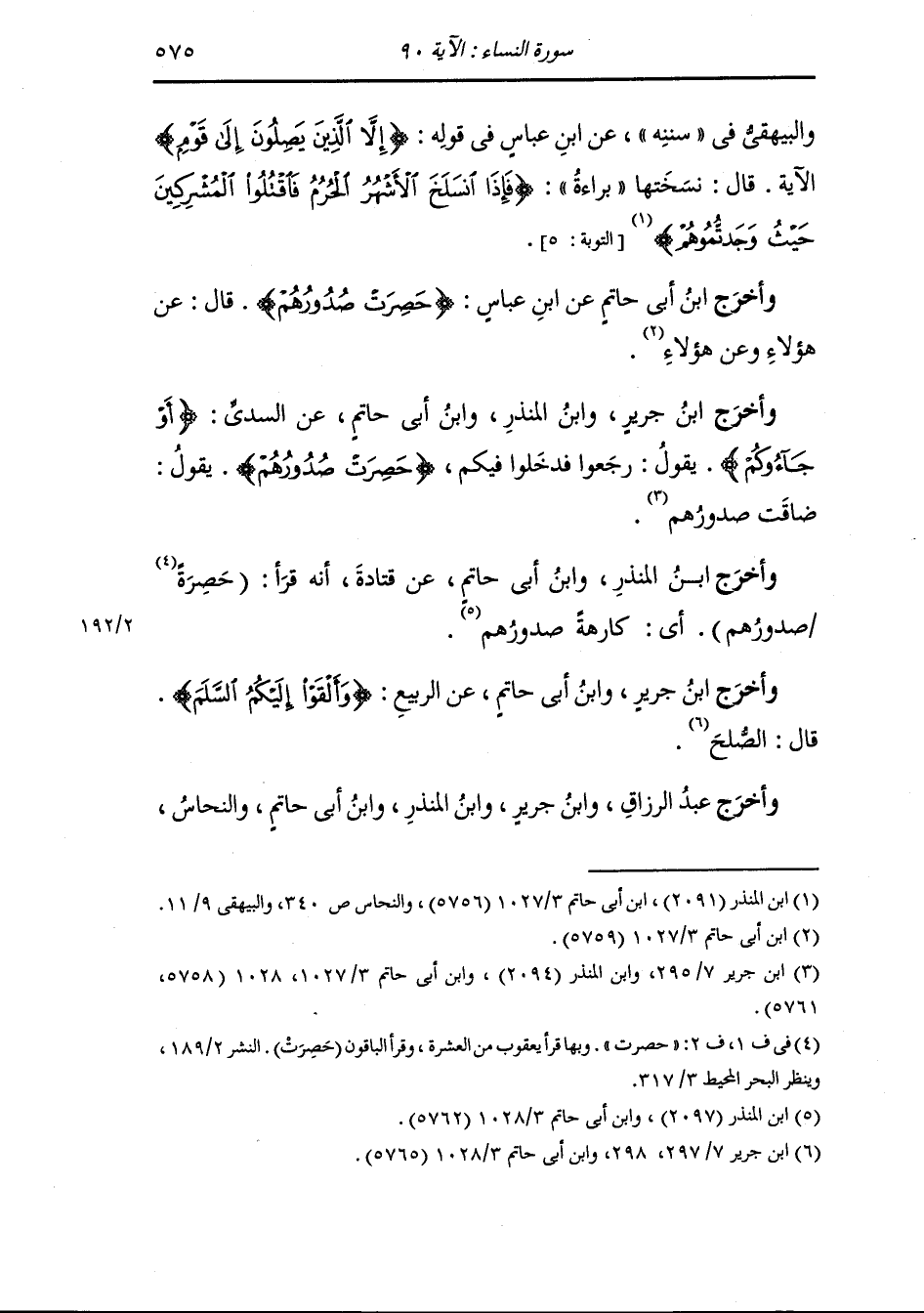 قوله {فإن اعتزلوكم} الآية ، قال : نسختها (فاقتلوا المشركين حيث وجدتموهم) (التوبة الآية 5).