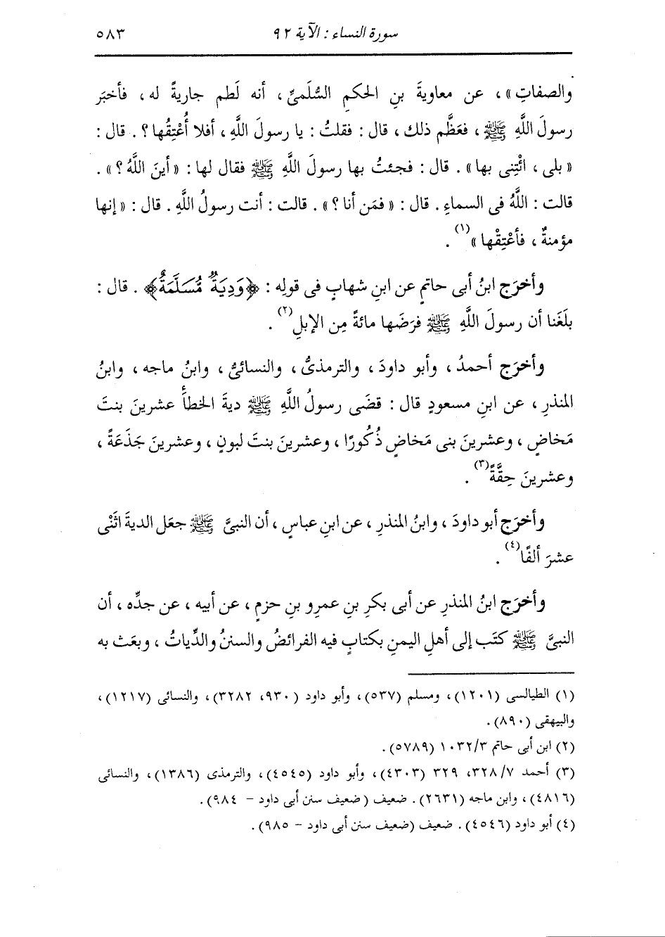 وأخرج ابن أبي حاتم عن سعيد بن المسيب في قوله {مسلمة إلى أهله} قال : المسلمة التامة.
