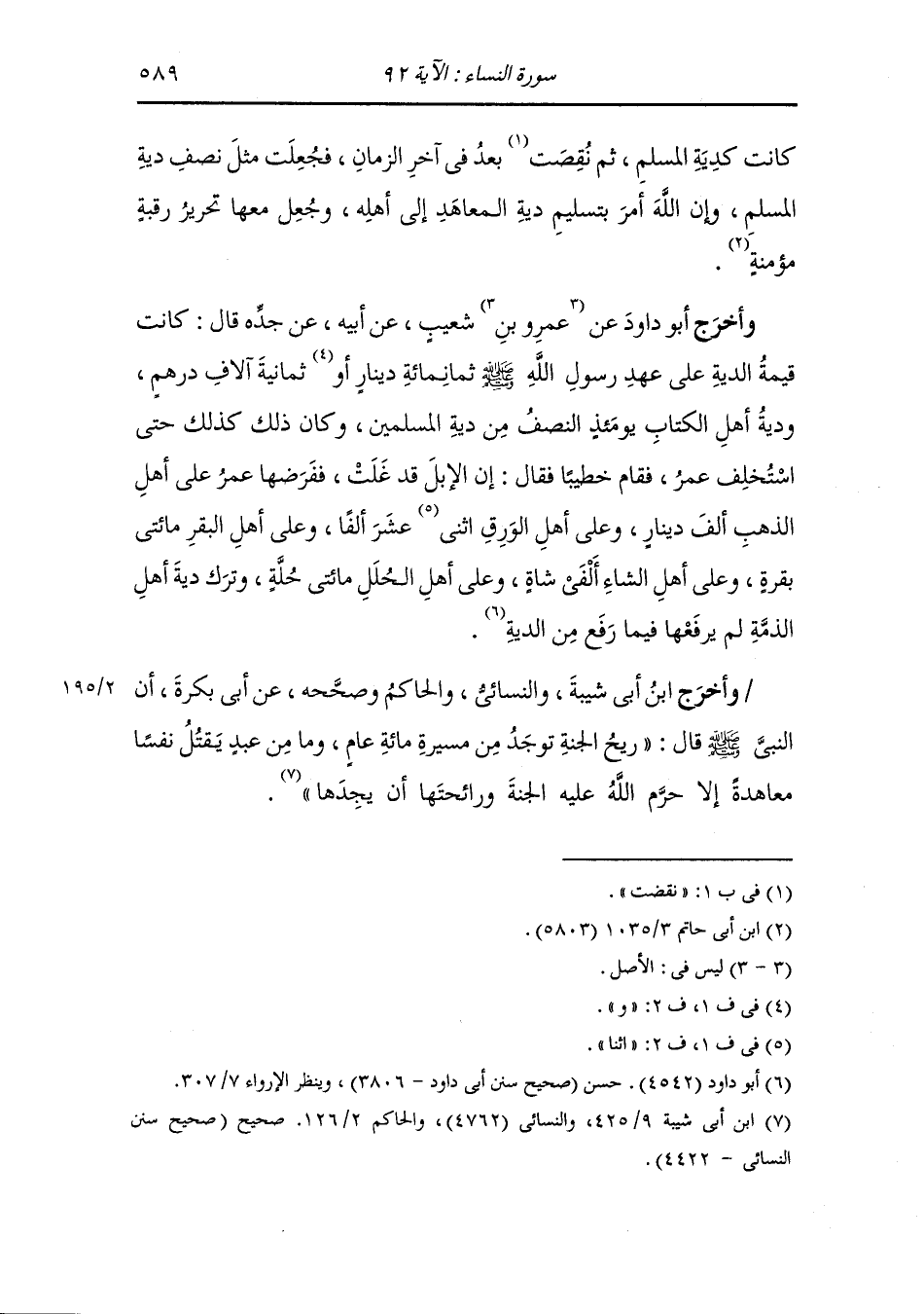 وأخرج الشافعي وعبد الرزاق ، وَابن أبي شيبة ، وَابن جَرِير عن سعيد بن المسيب قال : قال عمر بن الخطاب : دية أهل الكتاب أربعة آلاف درهم ودية المجوس ثمانمائة.