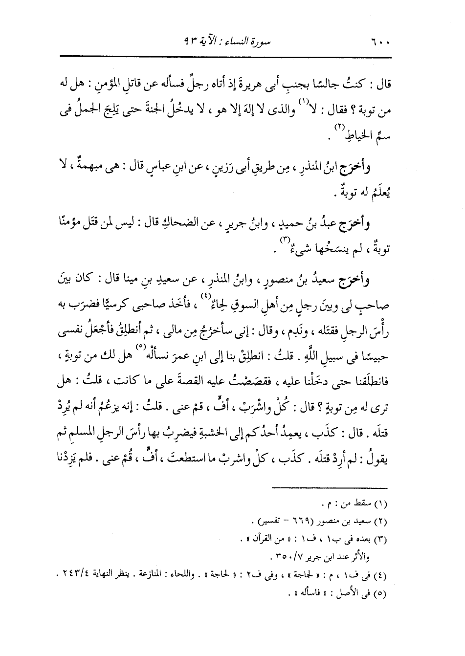 وأخرج سعيد بن منصور عن ابن مسعود قال : قتل المؤمن معقلة.