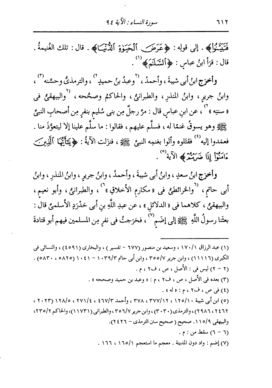 وأخرج ابن إسحاق ، وعَبد بن حُمَيد ، وَابن جَرِير ، وَابن المنذر ، وَابن أبي حاتم والبغوي في معجمه من طريق يزيد بن عبد الله بن قسيط عن أبي حدرد الأسلمي عن أبيه نحوه وفيه فقال النَّبِيّ صلى الله عليه وسلم : أقتلته بعدما قال : آمنت بالله فنزل القرآن.
