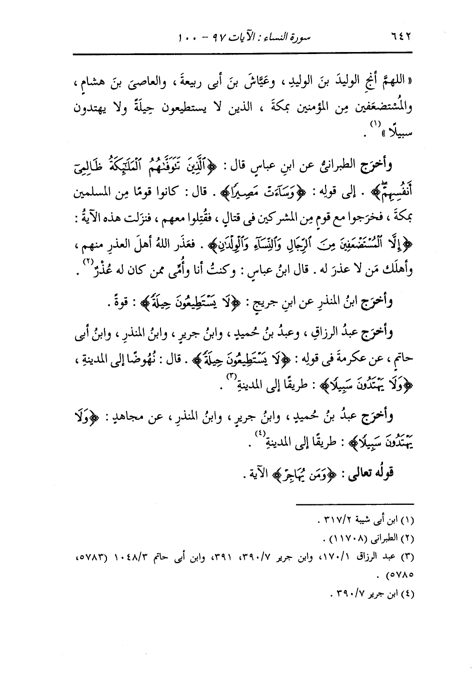أخرج ابن جرير ، وَابن المنذر ، وَابن أبي حاتم من طريق علي عن ابن عباس في قوله {مراغما كثيرا وسعة} قال : المراغم التحول من أرض إلى أرض ، والسعة الرزق.