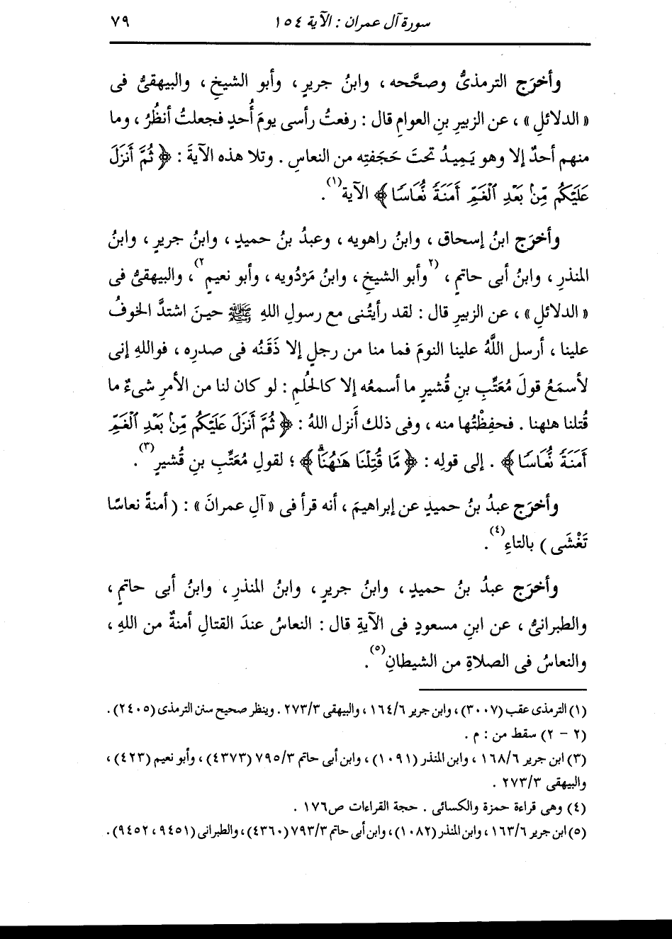 وأخرج ابن سعد ، وَابن أبي شيبة ، وعَبد بن حُمَيد والترمذي وصححه والحاكم وصححه ، وَابن مردويه ، وَابن جَرِير والطبراني وأبو نعيم والبيهقي معا في الدلائل عن الزبير ابن العوام قال : رفعت رأسي يوم أحد فجعلت أنظر وما منهم من أحد إلا وهو مميد تحت حجفته من النعاس ، فذلك قوله {ثم أنزل عليكم من بعد الغم أمنة نعاسا} وتلا هذه الآية {ثم أنزل عليكم من بعد الغم أمنة نعاسا}