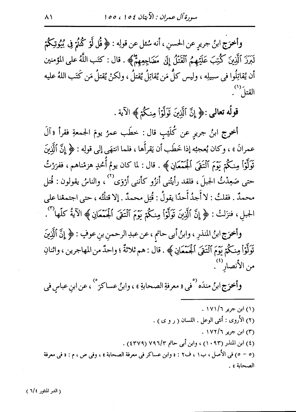 وأخرج ابن إسحاق ، وَابن أبي حاتم عن ابن عباس قال معتب : الذي قال يوم أحد {لو كان لنا من الأمر شيء ما قتلنا ها هنا} فأنزل الله في ذلك من قوله {وطائفة قد أهمتهم أنفسهم يظنون بالله} إلى آخر القصة.