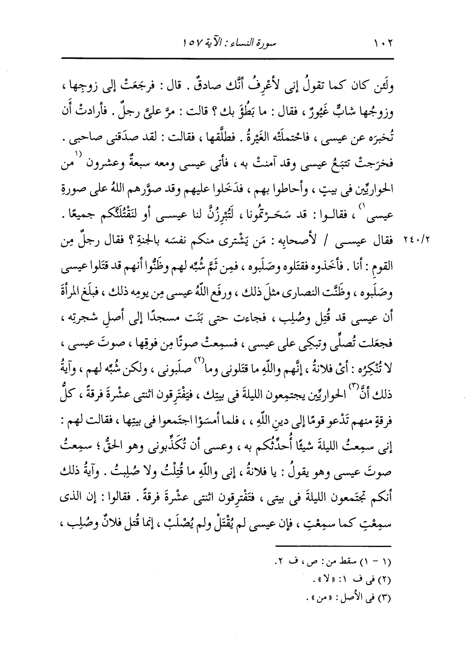 ثم إن أمه والمرأة التي كان يدوايها عيسى فأبرأها الله من الجنون جاءتا تبكيان حيث المصلوب فجاءهما عيسى فقال : علام تبكيان قالتا عليك ، قال : إني قد رفعني الله إليه ولم يصبني إلا خير وإن هذا شيء شبه