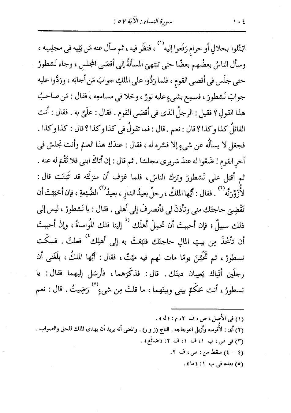 ولئن كان كما تقول إني لأعرف أنك صادق ، قال : فرجعت إلى زوجها وزوجها شاب غيور فقال : ما بطؤ بك قالت : مر علي رجل فأرادت أن تخبره عن عيسى فاحتملته الغيرة فطلقها فقالت : لقد صدقني صاحبي ، فخرجت تتبع عيسى وقد آمنت به فأتى عيسى ومعه سبعة وعشرون من الحواريين في بيت وأحاطوا بهم فدخلوا عليهم وقد صورهم الله على صورة عيسى فقالوا : قد سحرتمونا لتبرزن لنا عيسى أو لنقتلكم جميعا فقال عيسى لأصحابه : من يشتري منكم نفسه بالجنة فقال رجل من القوم : أنا ، فأخذوه فقتلوه وصلبوه فمن ثم شبه لهم وظنوا أنهم قد قتلوا عيسى وصلبوه فظنت النصارى مثل ذلك ورفع الله عيسى من يومه ذلك ، فبلغ المرأة أن عيسى قد قتل وصلب فجاءت حتى بنت مسجدا إلى أصل شجرته فجعلت تصلي وتبكي على عيسى فسمعت صوتا من فوقها صوت عيسى لا تنكره : أي فلانة إنهم والله ما قتلوني وما صلبوني ولكن شبه لهم وآية ذلك أن الحواريين يجتمعون الليلة في بيتك فيفترقون اثنتي عشرة فرقة كل فرقة منهم تدعو قوما إلى دين الله فلما أمسوا اجتمعوا في بيتها فقالت لهم : إني سمعت الليلة شيئا أحدثكم به وعسى أن تكذبوني وهو الحق سمعت صوت عيسى وهو يقول : يا فلانة إني والله ما قتلت ولا صلبت وآية ذلك أنكم تجتمعون الليلة في بيتي فتفترقون اثنتي عشرة فرقة فقالوا : إن الذي سمعت كما سمعت فإن عيسى لم يقتل ولم يصلب إنما قتل فلان وصلب