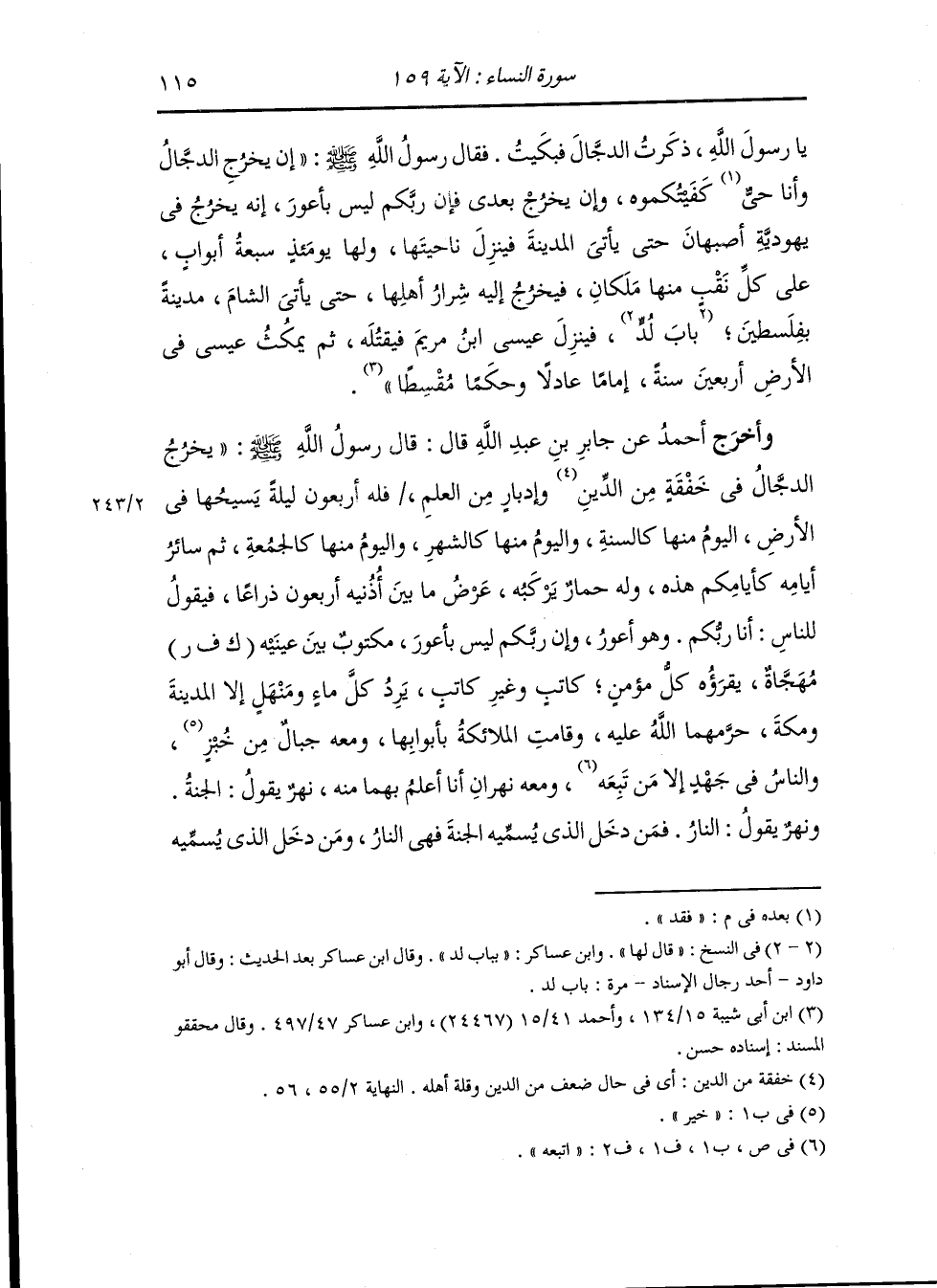وأخرج أحمد عن أبي هريرة قال : قال رسول الله صلى الله عليه وسلم : ينزل ابن مريم إماما عادلا وحكما مقسطا فيكسر الصليب ويقتل الخنزير ويرجع السلم وتتخذ السيوف مناجل وتذهب حمة