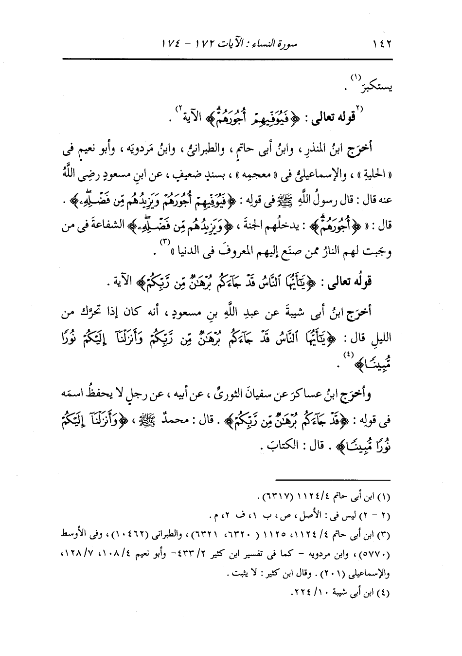 أخرج ابن أبي حاتم عن ابن عباس في قوله {لن يستنكف} قال : لن